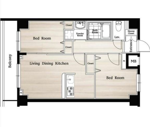 2LDK/システムキッチン/バス・トイレ別/独立洗面台/脱衣所/洗濯機室内/浴室乾燥機/温水洗浄便座/クローゼット/シューズボックス/照明/フローリング/バルコニー/エアコン/モニター付きインターホン/24時間換気システム