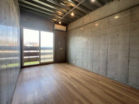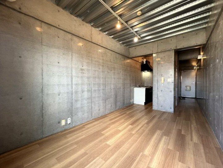 建物はコンクリート打ちっぱなしのスタイリッシュな内装が特徴で、無駄を省いた洗練されたデザインが都会的な雰囲気を演出。シンプルながらも存在感のある室内空間は、家具やインテリア次第で自分らしい暮らしを楽しめます。