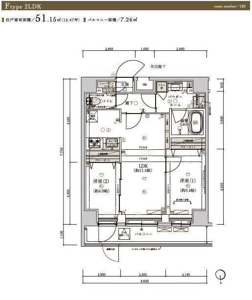 2LDK / 51.15m²~ |